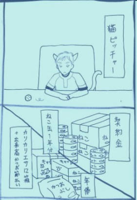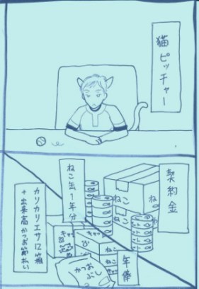 そんでトップ描いた勢いと5月のねこ本の残滓でねこハラダさんをちょっと描き始めてみますた、某新聞のサンデーマンガの丸パクですが!(っだだだってちょうカワいかったんだmon!すげーオモシロかったんだMON!)続きがいつ上げられるかアレですが巧門(まだそんなこと言ってる・・・)シーンがあるのでガンガル。